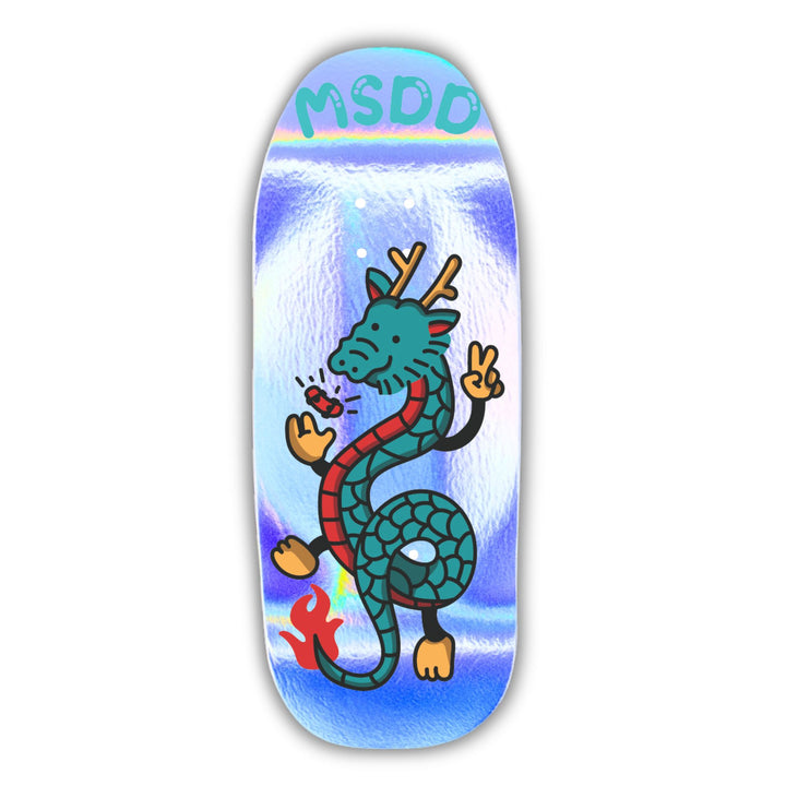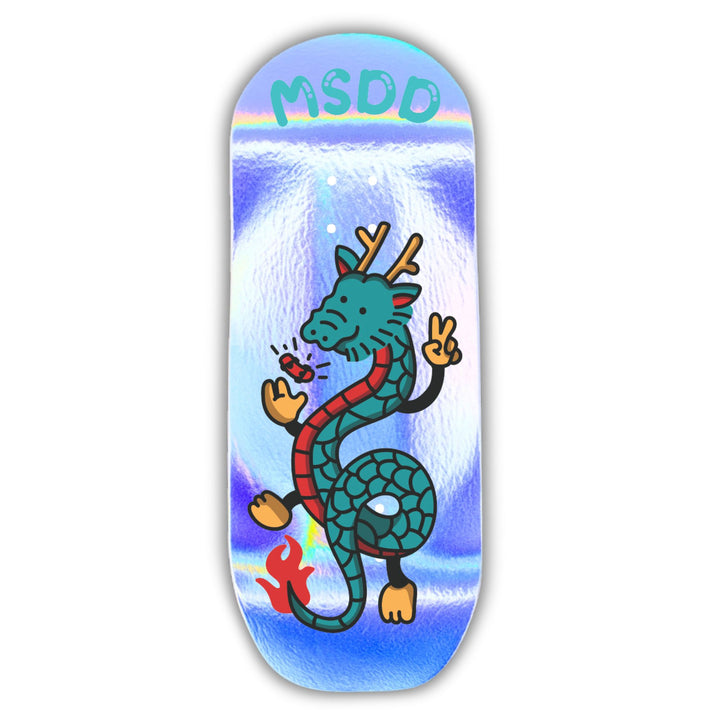 Com um acabamento holográfico exclusivo da marca Meu Skate de Dedo, o visual desse deck é simplesmente hipnotizante — muda de cor conforme a luz, destacando-se em qualquer sessão.
