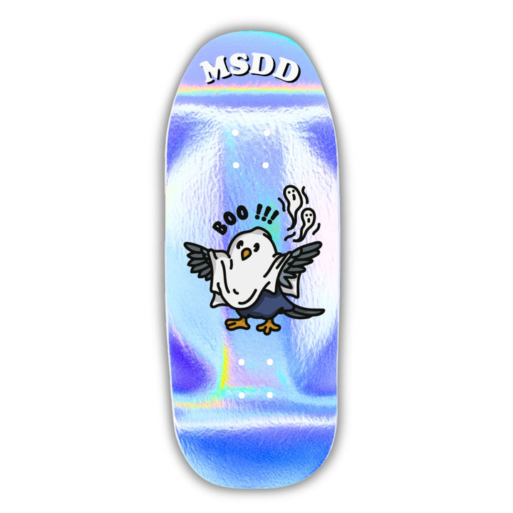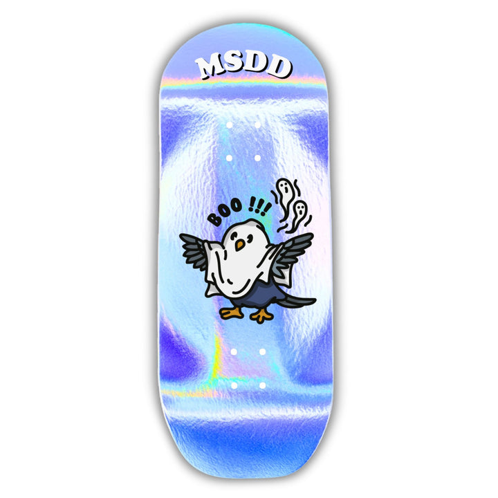 Com um acabamento holográfico exclusivo da marca Meu Skate de Dedo, o visual desse deck é simplesmente hipnotizante — muda de cor conforme a luz, destacando-se em qualquer sessão.