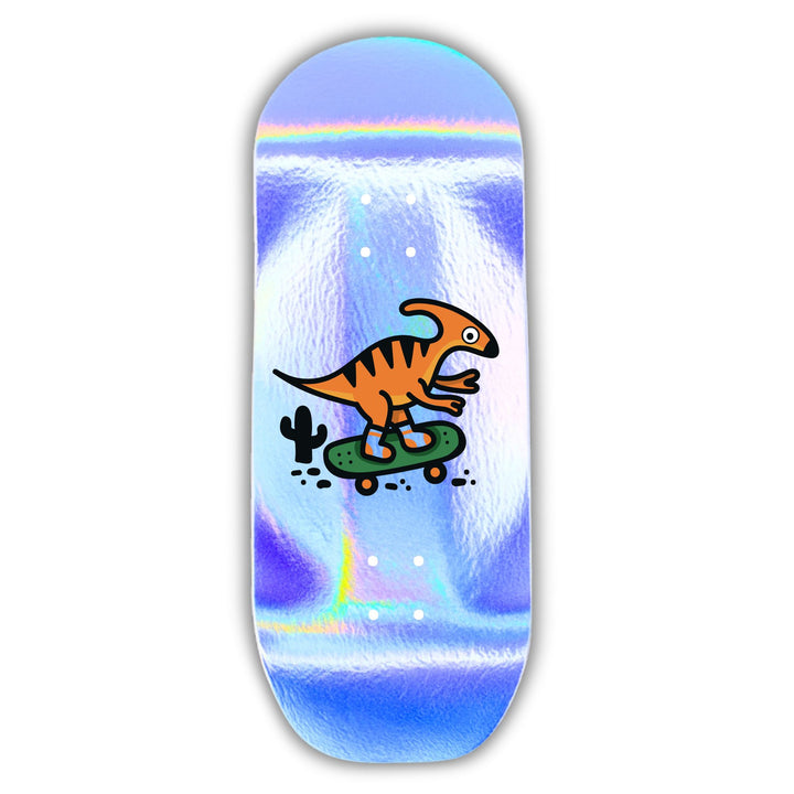 Com um acabamento holográfico exclusivo da marca Meu Skate de Dedo, o visual desse deck é simplesmente hipnotizante — muda de cor conforme a luz, destacando-se em qualquer sessão.