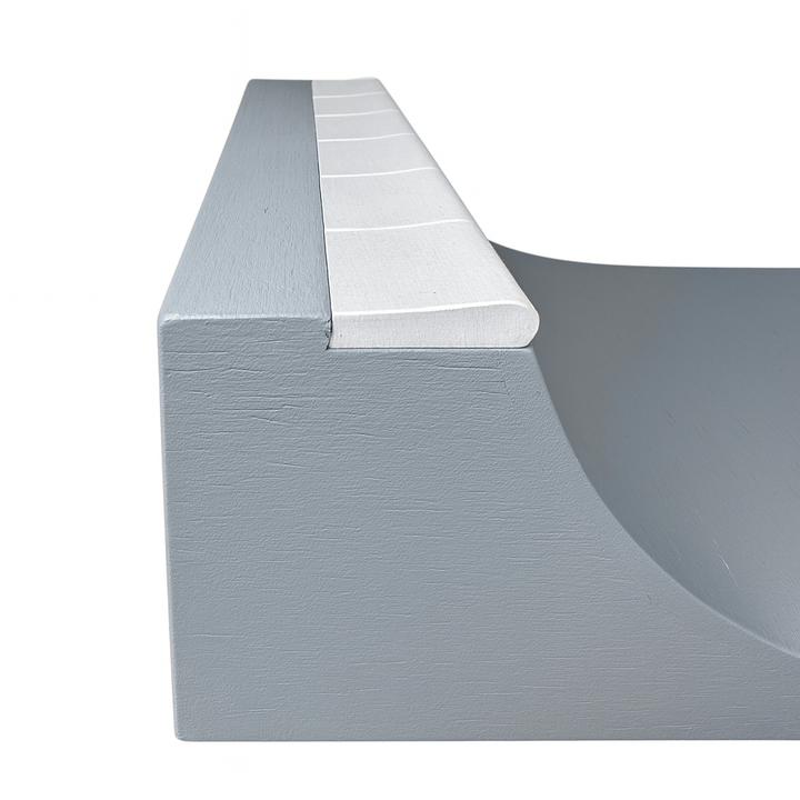 Seu grande diferencial está no Coping Block, instalado nas bordas — exatamente como nas mini ramps de skate de pé.